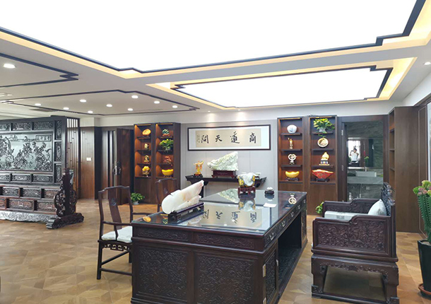 在一層的裝修設(shè)計(jì)中,將前臺(tái)劃分到這里,一直到二層的辦公區(qū),都是基礎(chǔ)的裝修設(shè)計(jì)。到了三層開(kāi)始,就以深色為主。因?yàn)槭墙?jīng)理辦公室,所以將三層設(shè)計(jì)成有深厚沉穩(wěn)的底蘊(yùn),中式裝飾造型的風(fēng)格:主要采用硬朗簡(jiǎn)潔的直線條,空間具有層次感,又符合現(xiàn)代人追求的時(shí)尚感、實(shí)用性。古典古香的基調(diào)、家具與裝飾的搭配。銀川裝修公司镹臻裝飾的設(shè)計(jì)師利用桃木的家具、定制桌椅、以增添新中式的原汁原味。