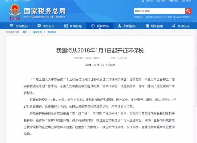 一、我國從2018年1月1日起開征環保稅